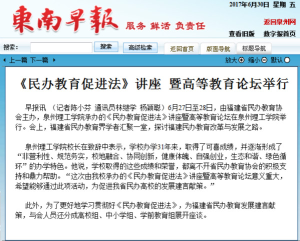 • 【东南早报】《民办教育促进法》讲座 暨高等教育论坛举行