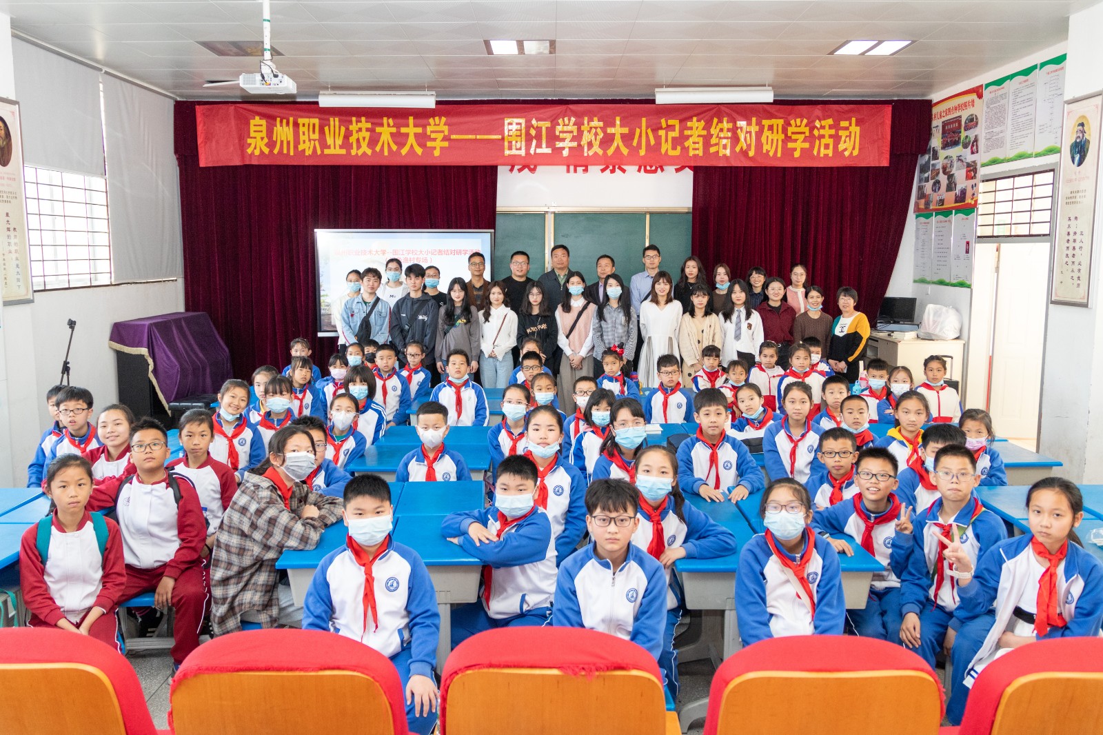 3月28日,我校与围江学校共同开展了“大学带小学,大手拉小手”大小记者结对研学活动。我校校务顾问/泉州职业技术大学(围头)乡村振兴学院专家委员会主任林其天研究员、党委宣传部副部长洪春锦、通识教育学院鲁学东...