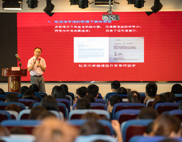 专题报告以《正确认识美国社会  增强民族复兴自信》为主题。林怀艺教授结合自己在美国访学交流的经历与见闻,从生活、教育、医疗、政府治理结构、社会安全等方面全面、深入地讲解了中美差别之处,阐述了如何在国际对比的视野中牢固树立中国特色社会主义道路自信、理论自信、制度自信、文化自信,引导广大青年师生要忠于祖国、忠于人民,号召青年师生要增强战略思维和世界眼光,在实现中华民族伟大复兴的中国梦的进程中,取其精华去其糟粕,“撸起袖子加油干”,努力实现中国梦。