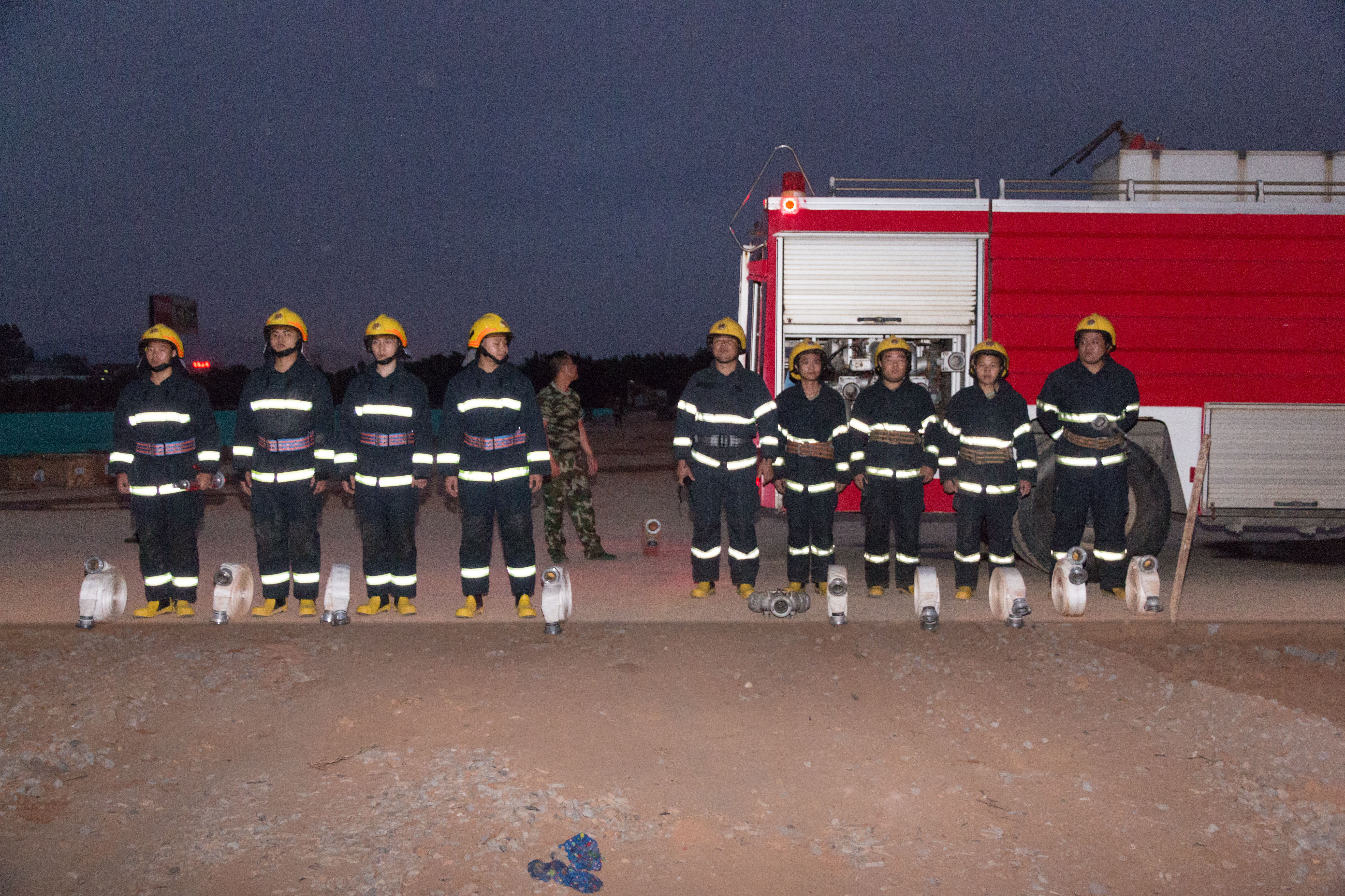 消防官兵整装待发,做好各项演练准备
