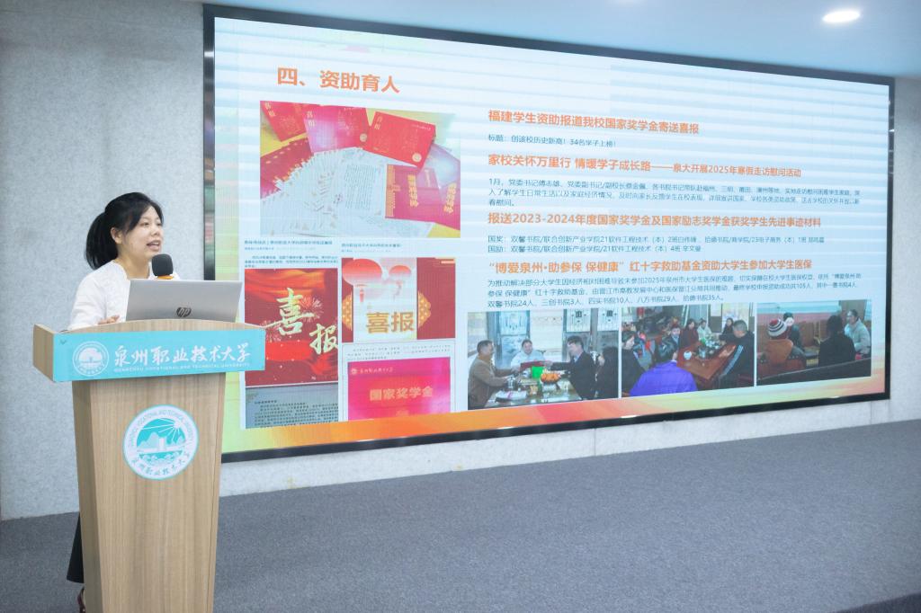 蔡金佩围绕重点学生工作提出四点具体要求,一是守牢安全底线,压实责任体系。筑牢思想意识阵地,强化学生心理健康,加强对学生人身安全、公共安全教育,营造安全稳定的育人环境。二是深耕思政育人,创品牌强内涵。以学生为主体,以学院和书院为两翼,强化思政引领力,五育融合促进学生全面发展,实现专业教育与思政教育的有机融合,构建三全育人新格局。三是强化双院协同,凝聚育人合力。加强专业学院与主题书院、专业课程与活动课程、校企合作与校地共建等多方面协同,凝聚合力协同育人。四是抓队伍提效能,人工智能拓新局。持续推进学工干部素质能力提升工程,加强理论研究,增强核心素养提升能力水平,持续推进智慧学工建设,提升管理服务水平。