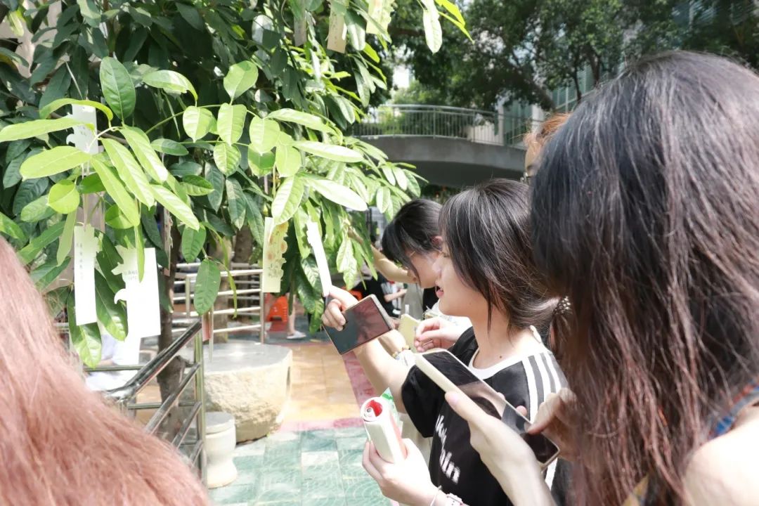 回到书院大厅后,活动进入温馨的“春映漆签”环节。同学们专注地在精美的漆签上挥毫泼墨,将对春天的美好期许、对校园的深厚情感,以及对绿色建筑的理解倾注于笔端。有的同学写道:“我们终将迎来一个更加绿色、美好的未来”;有的同学寄语:“作为泉大的一员,我将以实际行动践行绿色发展理念,为打造更加美好的校园环境贡献青春力量!”……