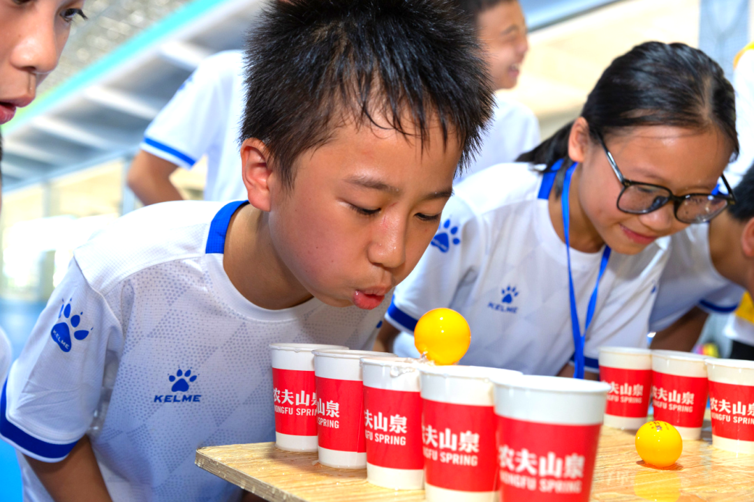 开营首日,一场别开生面的心理团建活动便打破了陌生感,“桃花朵朵开”破冰游戏迅速点燃现场氛围;报纸建塔”挑战加深团队协作,“夏日粘土奇遇”环节为活动增添了无限创意与乐趣。随后的非接触式心理互动测评,帮助团队老师了解营员情况,为夏令营活动提供参考。趣味运动会上更是热闹非凡。足球保龄球、摸石过河、纸杯搭搭……营员们为团队荣誉拼搏,陈少聪赢得比赛后与队友相拥:“一起努力的感觉真好!”