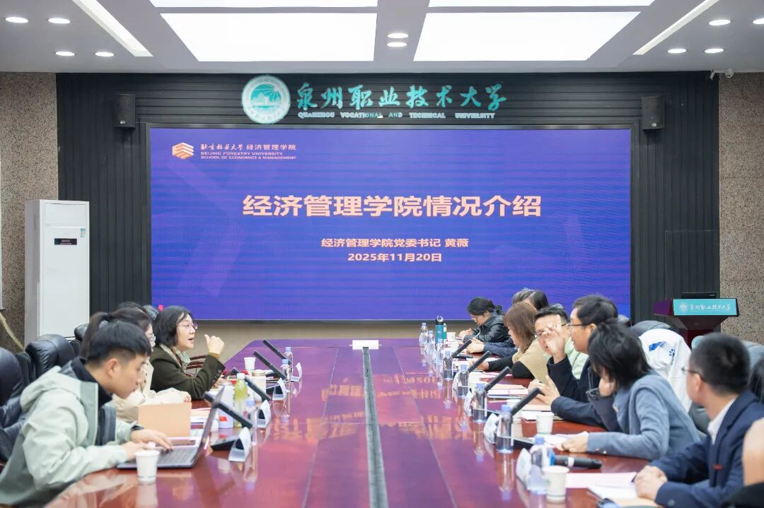 11月20日,北京林业大学经济管理学院党委书记黄薇率队访问泉州职业技术大学,与我校副校长林文艺等领导及教师代表共聚一堂,围绕校际合作展开深入交流。泉州市物业管理协会会长郭志铭作为产业界代表共同参与,开启“校企协”三方协同育人新篇章。