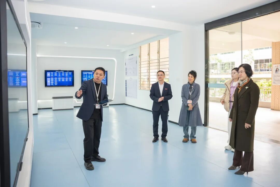 会前,黄薇一行实地考察我校校史馆、绿色建筑展厅、数智产教融合展厅、艺术工坊等特色教学空间,深入了解我校在职业教育与产教融合方面的实践成果。