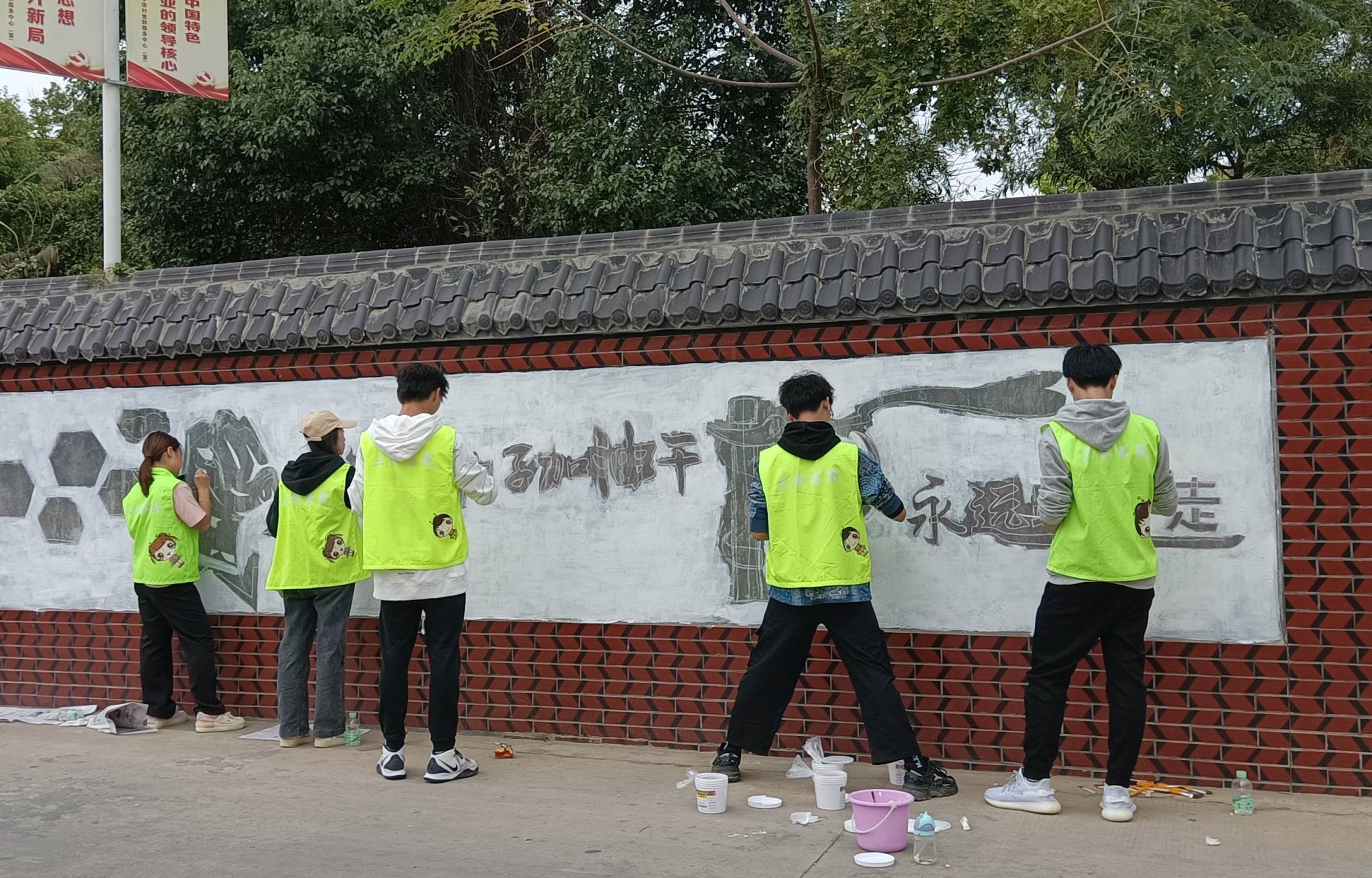 组建“画小匠”志愿服务队。晋江市金井镇围头村是中国历史文化名村,围头“八·二三”炮战遗址是福建党史学习教育参观学习点。2020年党总支与“海峡旅游名村”金井镇围头村共建“创客实践教育基地”。2022年党总支组织16名学生党员、入党积极分子成立“画小匠”志愿服务队,围绕围头典型人物代表和能够反映红色战地文化的元素作为素材进行墙绘创作,吸引了众多游客驻足观看,被晋江市电视台报道。晋江市内坑镇亭顶村作为革命老区基点村,拥有“红色粮仓”等红色文化资源。团队以“红色粮仓”等承载历史印记的地点为素材,精心设计创作红色主题墙绘,累计完成438.36平方米。因项目创新性与实效性突出,“画小匠”志愿服务队成功入选“笃行计划”专项行动全国示范性团队,成为全国高校红色实践的典型案例之一。