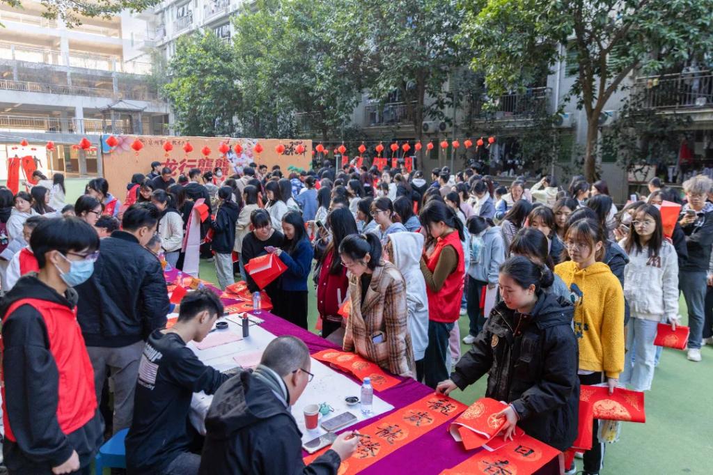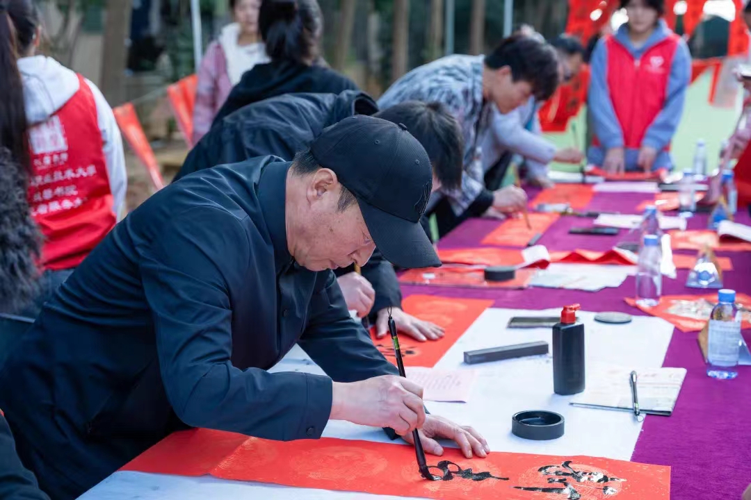 为进一步提升资助育人成效,弘扬中华优秀传统文化,新春佳节来临之际,泉州职业技术大学举行“龙行龘龘 墨香泉大”送春联活动。邀请中国书法家协会、福建省书法家协会的几位书法家和学校师生们一同书写、现场赠送,为泉大师生献上了吉祥喜庆的春联。他们命笔挥毫,一撇一捺之间,将新春祝福深深地融在了一张张联纸上,整个校园瞬间溢满了浓浓的墨香。