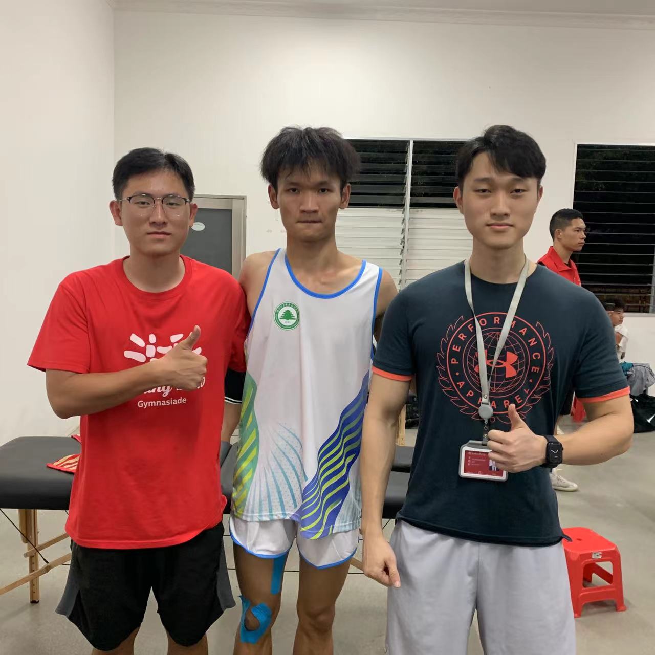 帮助健儿做好运动康复,使他们取得好成绩,老师章天宇和王雨轩遇到更多案例。其中,男子丙组100米决赛前一天,一位运动员何同学因之前的比赛右腿大腿前侧肌肉拉伤还未恢复,于是找到章天宇帮忙。章老师帮他做了赛前臀肌激活训练,并稳定了其核心肌肉。经过两次运动康复后,何同学竟然一举拿下冠军。比赛结束后,他还特地去感谢章老师。