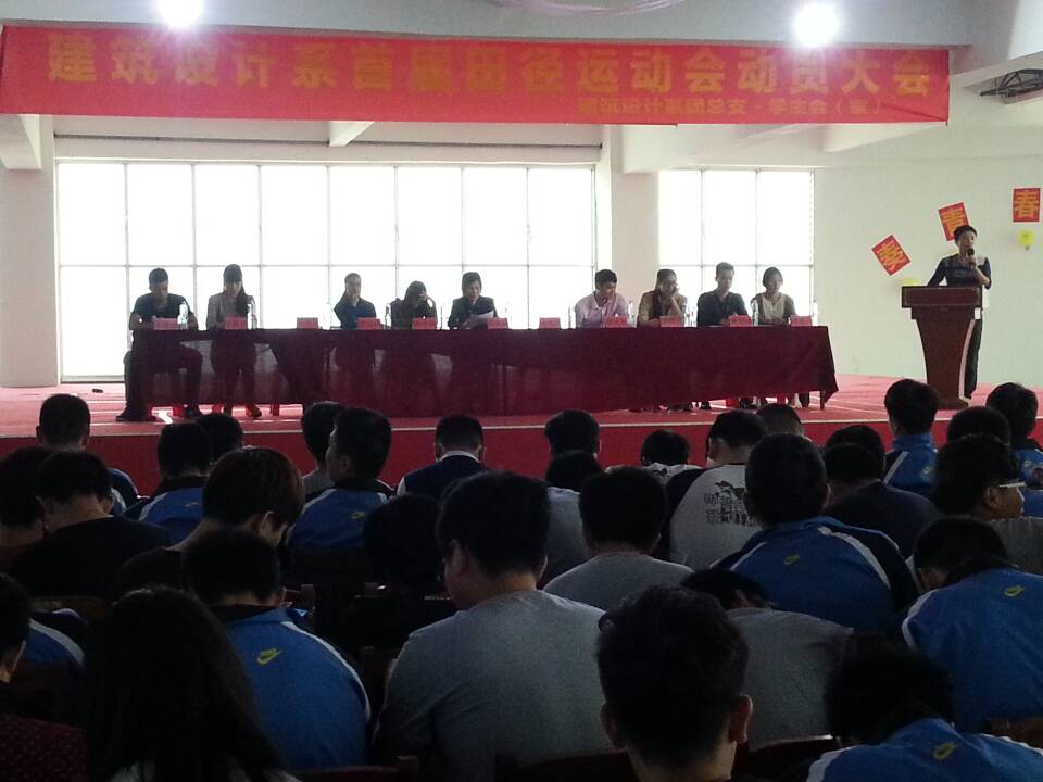 为丰富学生课外活动,普及群众性体育运动,发扬运动精神及团队精神,建筑设计系于2015年5月6日下午在泉州理工学院西教大礼堂召开建筑系首届田径运动会动员大会。本届运动会得到院系领导的高度重视,建筑系主任吴铭辉老师、建筑系党总支书记涂永坚老师、建筑系团总支书记黄荣峰老师、建筑系全体辅导员以及全系学生参加了本次动员大会。