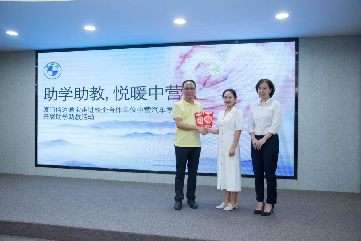 10月15日下午,一场厦门信达通宝“助学助教,悦暖中营”的爱心公益活动在A301国际会议厅举行。中营汽车学院院长陈其生、党支部书记兼副院长欧阳春风、学业辅导员付琴和部分专业教师和学生代表,以及信达国贸汽车党总支办公室专员张悦、厦门信达通宝行政经理卓晓玲、市场经理郑小妹等参加了此次活动。